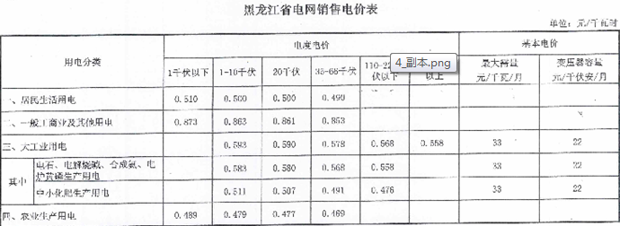 注:1、上表所列價格,均含農網還貸資金2分錢、三峽工程建設基金0.4分錢。