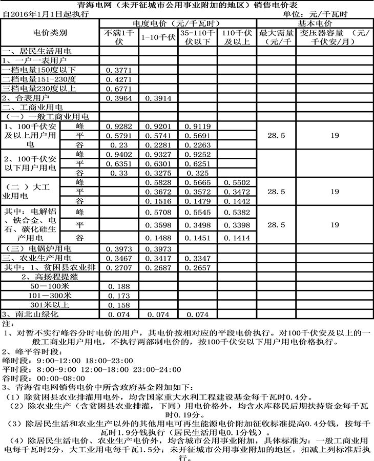 1、一般工商業用電 | 100千伏安及以上 | 0.5991 | 0.5941 | 0.5891 | 28.5 | 19 | |