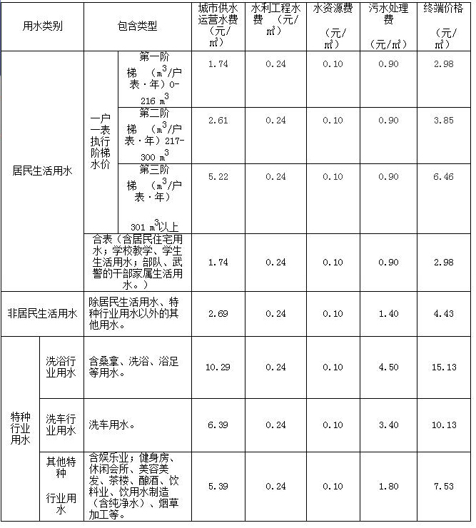 成都市污水處理費及自來水價格收費標(biāo)準(zhǔn)