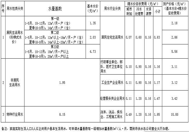 淮北市水價一覽表: