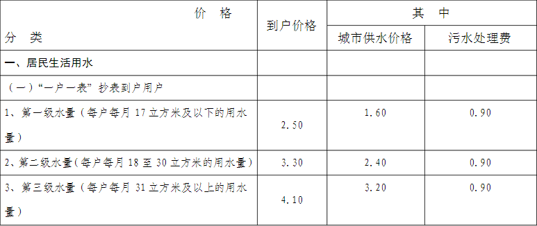 嘉興市區城市供水到戶價格表