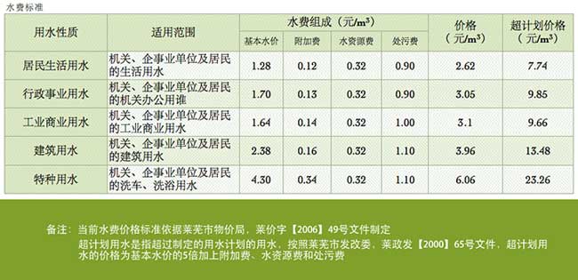 萊蕪市水費價格是多少